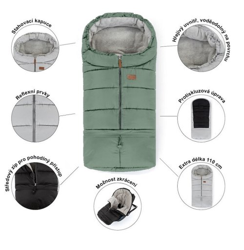 Komplet výbava na zimní kočárkování. Hřejivý prodloužitelný fusak Jibot 3v1 pro miminko a hřejivé rukavice Jasie na kočárek pro maminku. Vše krásně sladěné v jednotném odstínu.