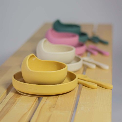 TAKE&MATCH série TAKE what you need and MATCH as you like. Vyberte si výrobky, které vaše dítě potřebuje, a slaďte je barevně podle svých představ. Jídelní sety jsou k dispozici v barvách inspirovaných nejnovějšími trendy a zkomponovány tak, aby každá barva dokonale ladila s ostatními. Můžete proto libovolně kombinovat všechny prvky potřebné k přípravě bezpečného jídla pro vaše dítě a vytvořit si tak vlastní jedinečnou kolekci. Díky naší sérii se krmení vašeho dítěte stane nejen velmi jednoduchým, ale také estetickým a příjemným. Silikonový talíř TAKE&MATCH s přísavkou Praktický talíř je celý vyroben z potravinářského silikonu bez obsahu BPA. Díky tomu jej lze bezpečně používat na všechny potraviny, teplé i studené, a jídlo v něm lze bez obav ohřívat v mikrovlnné troubě nebo uchovávat v chladničce. Díky odolnému a měkkému silikonu se nemusíte obávat, že se talíř rozbije, odštěpí nebo zdeformuje – můžete jej nepoškozený používat dlouhou dobu. Je vhodný pro děti od 6 měsíců, které se seznamují s rozšířenou stravou a pro ty, které se již úspěšně učí jíst samy. Zaoblený tvar usnadňuje děťátku papání. Pro pohodlí dítěte i rodičů má talíř přísavku, která přilne k povrchu stolu nebo židle. Předpokladem fungování přísavky je čistý povrch stolu. Talíř lze kombinovat s jiným výrobkem ze série TAKE&MATCH ve stejné nebo hodící se barvě.