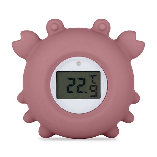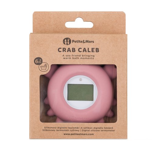 Digitální silikonový teploměr Krab Caleb je praktické a přátelské řešení pro sledování teploty vody při koupání vašeho miminka. Díky přesnému digitálnímu měření ve °C i °F pomáhá zajistit, aby každá koupel byla bezpečná a příjemná. Díky roztomilému tvaru kraba není kontrola teploty jen snadnější, ale zároveň přináší do každodenní koupele zábavu a hravost. Vyrobený ze 100% bezpečného silikonu, jemně plave na hladině a je příjemný na dotek. Teploměr je testován nezávislými výzkumnými institucemi, což zaručuje vysokou kvalitu a bezpečné používání. Součástí balení je vyměnitelná knoflíková baterie pro dlouhou výdrž.