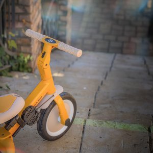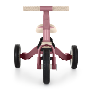 Multifunkční tříkolka určená pro děti od 1,5 do 5 let nebo do 25 kilogramů. Je to nejen dopravní prostředek pro přesun a učení se rovnováhy, ale také společník pro rostoucí dítě během mnoha vývojových fází. Promyšlené měnění se kola se přizpůsobuje potřebám děťátka podle toho, jak se vyvíjejí jeho motorické schopnosti. Zpočátku je to tříkolka s možností asistence rodiče, zatímco konečná verze je standardní kolo s pedály, bez jakýchkoli dalších podpůrných prvků. Díky takovým změnám můžete pomoci svému dítěti naučit se jezdit na dvou kolech.