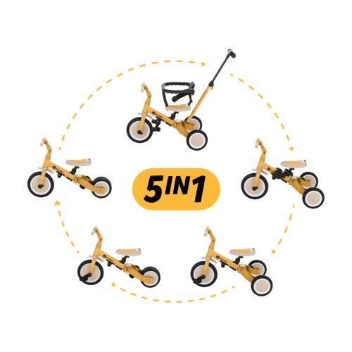 Multifunkční tříkolka určená pro děti od 1,5 do 5 let nebo do 25 kilogramů. Je to nejen dopravní prostředek pro přesun a učení se rovnováhy, ale také společník pro rostoucí dítě během mnoha vývojových fází. Promyšlené měnění se kola se přizpůsobuje potřebám děťátka podle toho, jak se vyvíjejí jeho motorické schopnosti. Zpočátku je to tříkolka s možností asistence rodiče, zatímco konečná verze je standardní kolo s pedály, bez jakýchkoli dalších podpůrných prvků. Díky takovým změnám můžete pomoci svému dítěti naučit se jezdit na dvou kolech.