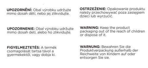 UPOZORNĚNÍ! Obal výrobku udržujte mimo dosah dětí, nebo jej zlikvidujte.