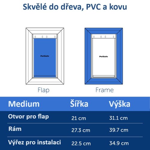 Dveře se snadno montují do obložených, dřevěných, plastových a kovových dveří s tloušťkou od 3,75 do 5 cm a instalaci díky přiloženému návodu jednoduše zvládnete i sami. Na výběr máte ze 3 velikostí dvířek pro domácí mazlíčky s hmotností až do 100 kilogramů.