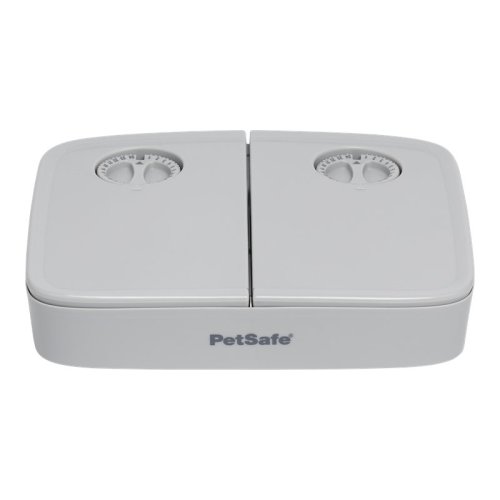 Přijdete domů později? Nebojte se! Pomůžeme Vám zajistit, aby Váš mazlíček už nikdy nezůstal hladem. Automatické krmítko PetSafe® nakrmí Vašeho domácího mazlíčka včas, ať už jste doma nebo ne. Pomocí časovačů pohodlně naplánujte krmení Vaší kočky nebo psa až 24 hodin předem (půlhodinové intervaly). Vyjímatelný vnitřní tác obsahuje 2 přihrádky, z nichž každá pojme až 355 ml suchého nebo polovlhkého krmiva. Váš mazlíček se sice může snažit, aby se ke své porci dostal dřív, než jste naplánovali, ale díky odolným víčkům se to nepodaří ani těm nejvytrvalejším nedočkavcům. Jistě Vás potěší i snadná údržba - když je potřeba zásobníky vyčistit, jednoduše je vyjměte a umyjte v horním koši myčky nádobí.