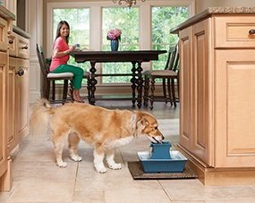 Stylová fontánka pro kočky a psy Drinkwell® Pagoda nepřetržitě cirkuluje vodu, čímž ji neustále filtruje a okysličuje. Dva volně padající proudy vody tak zaručují její svěžest, a tím povzbuzují vaše mazlíčky k lepšímu pitnému režimu. Keramický design zaručuje snadné čištění.