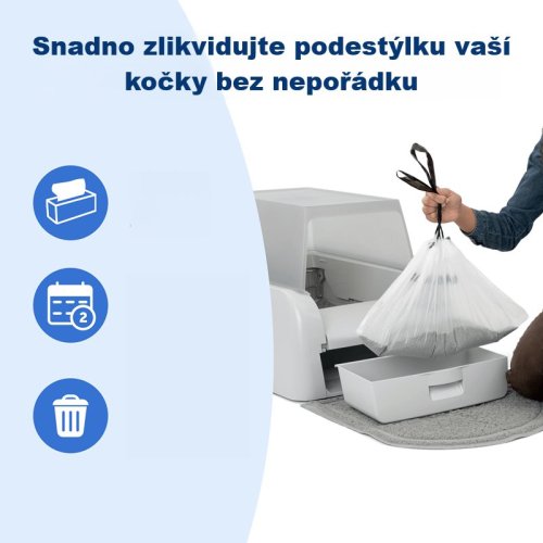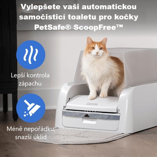 Zažijte méně zápachu, méně nepořádku a snadnější čištění! Tento set pro automatickou samočistící toaletu PetSafe® ScoopFree™ (BG-PAL10-17992) obsahuje ochranný kryt, sáčky do sběrného koše a rohožku před kočičí toaletu. Ochranný kryt poskytuje kočce soukromí a pomáhá zabránit šíření pachů v domácnosti. Snadno se instaluje a zabraňuje rozsypávání steliva po podlaze. Sáčky do sběrného koše usnadňují čištění toalety. Stačí použít jeden sáček, abyste se vyhnuli nepříjemnému úklidu nepořádku, a likvidace odpadu je tak bezproblémová. Každé balení obsahuje 25 sáčků. Rohožka udržuje podlahu čistou tím, že zachycuje zatoulané stelivo z boxu.