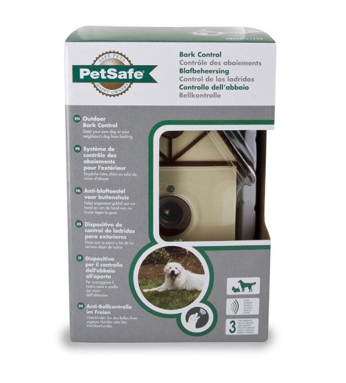 Statická jednotka využívající k zamezení štěkání ultrazvuk. Jednotka se aktivuje v okamžiku, kdy zabudovaný mikrofon zachytí psí štěkot v dosahu až 15 metrů. Zařízení vysílá ultrazvukový signál, který může slyšet pouze pes (frekvence 20kHz, korekce cca 120dB neslyšitelná pro lidi). Vyslaný signál by měl být pro štěkajícího psa natolik nepříjemný, aby přestal štěkat. Zařízení je vhodné pro vnější použití a je zcela vodotěsné. Vhodné na zavěšení do zahrady (na strom, plot a pod.). Zvuková korekce - ultrazvuk se spouští automaticky při detekci štěkotu. Zařízení lze nastavit na různé úrovně dosahu (do 4 / 9 / 15 m, testovací režim)