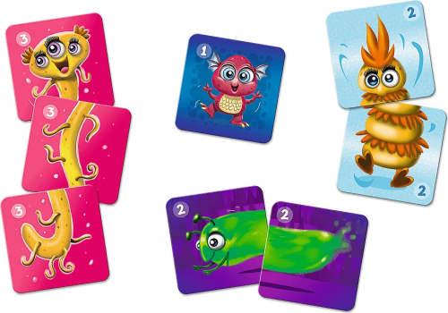 3 varianty pexesa s obrázky roztomilých příšerek velké kartonové kartičky zábavné procvičení paměti a koncentrace baleno v krabičce s uchem pro snadné přenášení
