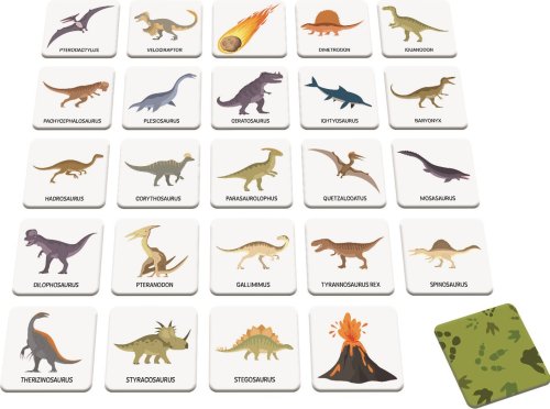 Pexeso je klasická hra pro všechny věkové kategorie. Hledej stejné dvojice kartiček. Vítězí ten, kdo najde nejvíce dvojic. Pexeso cvičí soustředění a dobrou paměť. Hra je ideální jako rodinná hra, při které mají malí příležitost zvítězit nad většími. Hra obsahuje: 24 dvojic - celkem 48 kartonových kartiček, návod ČESKÝ VÝROBEK od české firmy Dino Toys. Společnost Dino Toys spolupracuje s významnými výtvarníky, grafiky a vynálezci. Klade důraz na nejvyšší kvalitu obsahu, výtvarného zpracování a technického provedení jednotlivých výrobků. Tato firma se zabývá nakladatelskou činností v oblasti her, puzzle a obrázkových kostek.