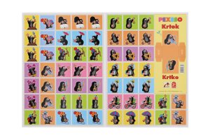 Pevný karton s lesklou voděodpudivou povrchovou úpravou, 60 kartiček/20 trojic/ velikost kartiček 4 x 4 cm (š x d), na pexesech u titulního obrázku umístěn box k vystřižení pro možnost vložení vystřižených kartiček.