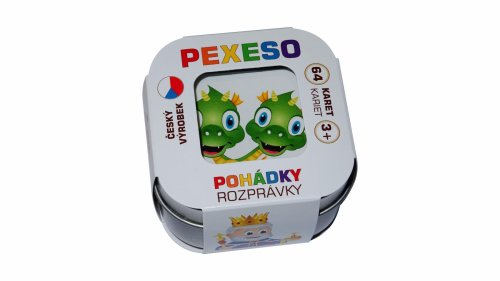 Originální pexeso v malé plechové krabičce s obrázky postaviček známých, oblíbených, ale i méně častých z pohádek, které si zaslouží naši pozornost. Pohádkové pexeso, 32 obrázků, 64 kartiček je součástí balení. Kartičky jsou vyrobeny z kvalitního karetního kartonu se speciálním karetním lakem, který zaručí opravdu dlouhou životnost kartiček. Tak pojďme na to! Kdo má většího pamatováka? Velikost krabičky: 6,5 x 6,5 x 4 cm Vhodné pro děti od 3 let.