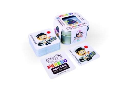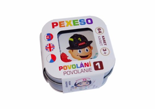 Originální pexeso v malé plechové krabičce s obrázky postaviček známých, oblíbených, ale i méně častých povolání, které si zaslouží naši pozornost a připomenutí. Česko - slovensko - anglické pexeso, 32 obrázků s českým a slovenským názvem a 32 obrázků s anglickým názvem a výslovností. Kartičky jsou vyrobeny z kvalitního karetního kartonu se speciálním karetním lakem, který zaručí opravdu dlouhou životnost kartiček. Pexesa POVOLÁNÍ 1 a POVOLÁNÍ 2 mají stejné zadní strany a tak je možné tyto dvě sady hrát společně a dát dohromady hrací plochu se 128 kartiček ve hře :-) Pexeso je baleno v kovové krabičce 6x6x4 cm. Vhodné pro děti od 3 let.