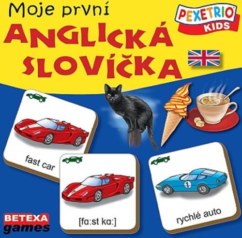 Nový druh oblíbené stolní hry Pexetrio - KIDS. Tyto stolní hry jsou určeny pro menší děti a to už od 3 let. Kartičky této série stolní hry jsou větších rozměrů (7x7 cm) a jsou vyrobeny ze silného trvanlivého kartónu o tloušťce 2,5 mm. To zaručí, že i menší děti zvládnout kartičky jednoduše otáčet. Toto téma stolní hry Pexetrio naučí vaše děti jejich první anglická slovíčka.