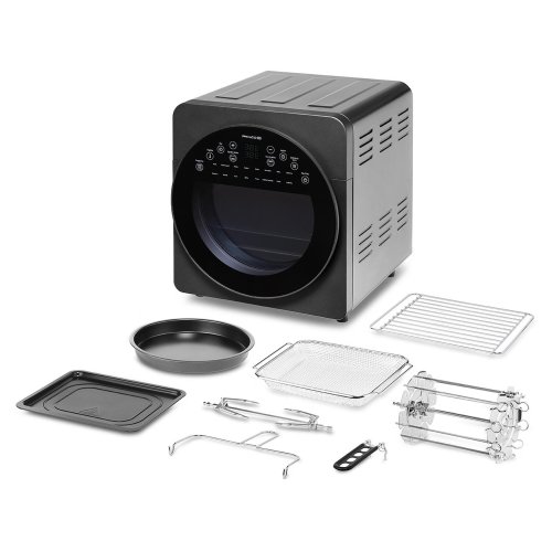 S objemem 15 litrů je ideální pro páry i rodiny do 4 členů – od rychlých svačin a občerstvení pro návštěvy až po plnohodnotný rodinný oběd. Přístroj nabízí flexibilní nastavení teploty od 50 do 220 °C, disponuje horním i spodním ohřevem s možností odděleného použití a výkonným ventilátorem, který zajišťuje rychlejší přípravu pokrmů bez zbytečného vysušování díky funkci TurboPečení. Nerezová vnitřní komora usnadňuje čištění a údržbu. Praktickým a designovým prvkem je velký kulatý průhled, který umožňuje kontrolu přípravy bez otevírání dvířek. Doba přípravy je nastavitelná až na 60 minut s možností dodatečného prodloužení. Jednoduché dotykové ovládání v českém jazyce zaručuje komfortní používání pro všechny členy domácnosti.
