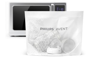 Snadná a rychlá sterilizace kdekoli a kdykoli Parní sterilizační sáčky Philips Avent do mikrovlnné trouby jsou rychlým, snadným a účinným způsobem, jak zajistit, že budete vždy mít sterilní kojenecké lahve a výrobky, ať jste kdekoli. S každým sáčkem lze lahve sterilizovat v mikrovlnné troubě za pouhých 90 sekund.