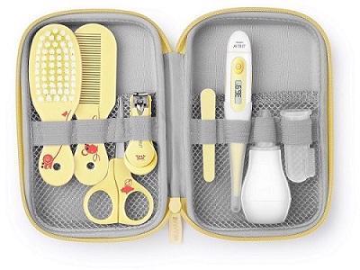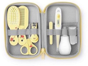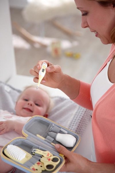 Můj první set Obsahuje všechny nezbytné pomůcky pro péči o dítě v jednom balení. S naším setem můžete poskytnout tu nejlepší péči pro vaše dítě. Set je kompaktní, obsahuje přesný, pohodlně a rychle měřící digitální teploměr, nosní odsávačku s jemným koncem, prstový kartáček na první zoubky, set pro péči o nehty a vlasy.