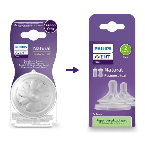 Vyberte pro vaše dítě savičku se správným průtokem Každé dítě se krmí jinak a vyvíjí se vlastním tempem. Navrhli jsme několik rychlostí průtoku, abyste mohli pro vaše dítě najít ten správný a lahev si tak přizpůsobit. Všechny savičky Natural Response jsou vyrobeny z měkkého silikonu.