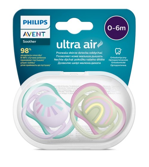 Philips AVENT Šidítko Ultra air Obrázek 0-6m dívka (duha), 2ks
