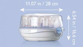 Parní sterilizátor do mikrovlnné trouby byl navržen pro většinu mikrovlnných trub na trhu a uchová tak dětské láhve a jiné výrobky sterilní, ať jste kdekoliv.