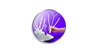 Flexibilní design pro uspořádané sušení. Pojme všechny výrobky, které každý den používáte pro krmení dítěte.