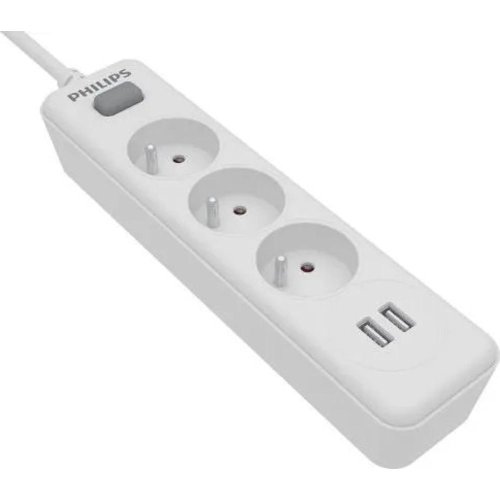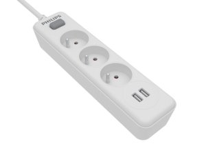 Klasický prodlužovací kabel 3 AC zásuvky 2 USB-A zásuvky Délka kabelu 2m Hlavní vypínač napájení Bezpečnostní ochrana - dětská závěrka Bílá barva