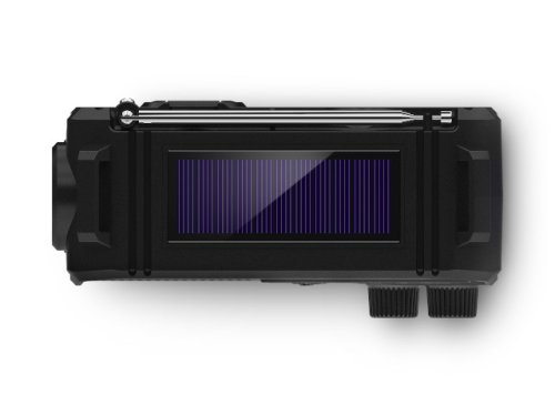 Záložní napájení pomocí solární energie nebo ruční kliky Rádio také využívá 3 baterie AAA (nejsou součástí balení) Port USB-A umožňuje v případě nouze použít rádio k nabíjení dalších zařízení