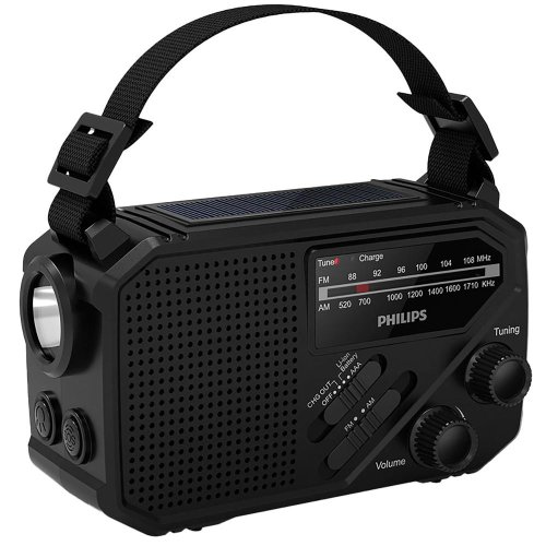 SOS alarm se zvukem a blikajícím světlem Spolehlivé analogové ladění FM/AM Dlouhá výsuvná anténa vám umožní přijímat rozhlasové vysílání v pásmu AM a FM Přehledný displej a analogové ovladače ladění a hlasitosti vám umožní snadno a rychle vybrat stanici a nastavit úroveň hlasitosti