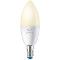 Užívejte si ještě více pohodlí v každodenním životě se stmívatelnou chytrou LED žárovkou WiZ s paticí E14. Žárovka svítí teplým bílým světlem a umožňuje plynulé stmívání pomocí aplikace. Nastavujte si automatické zapínání a zhasínání světel ve zvolenou dobu pomocí svého chytrého telefonu. Ovládejte svá světla hlasem a mějte je pod kontrolou, i když nejste doma. WiZ se připojuje přímo do vaší Wi-Fi sítě a není potřeba žádné další zařízení. 4,8 W