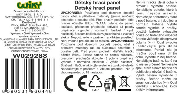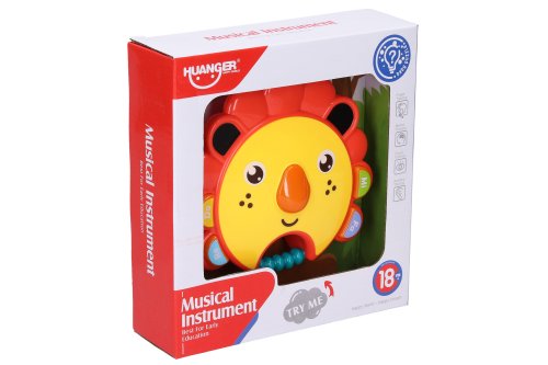 Piánko s melodiemi lev. Rozměry 15x14 cm. Jednotlivé klávesy aktivují jednotlivé tóny. Stiskem nosu se přepínají melodie. Klávesy a nos vydávají světelné efekty. Přepínač na zadní straně má 3 polohy - OFF, střední hlasitost, max hlasitost. 3xAAA baterie jsou součástí.