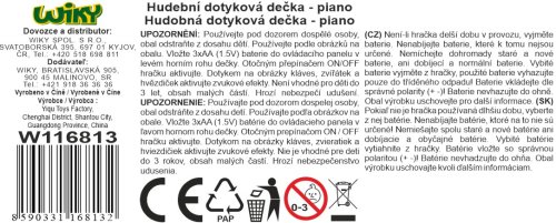 Piano v podobě dotykové dečky pro malé muzikanty. Dotykem kláves, zvířátek a hvězdiček se aktivují zvukové efekty. Při hře si děti rozvíjí smyslové vnímání a motoriku.