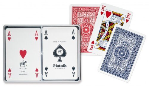 Plastové karty francouzského typu vhodné pro hraní kanasty, žolíka, bridže, pokeru nebo pasiánsu, které jsou baleny v praktické krabičce.