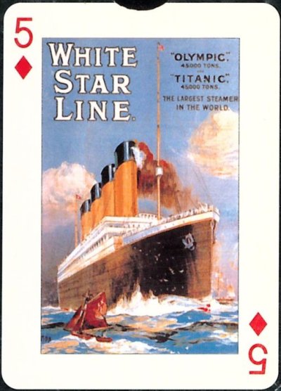 Hrací karty francouzského typu s obrázky jedné z nejslavnějších lodí světa - Titaniku. Poker i bridž se hraje zpravidla s kartami francouzského typu (52 listů – kříže, káry, srdce a piky).