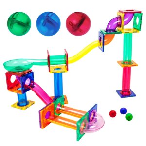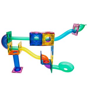 Obsahuje 50 magnetických stavebních dílků. Nabízí kuličkovou dráhu s klouby a trychtýři, kde kuličky projíždějí zatáčkami, překážkami a skluzavkami. Podporuje inženýrské dovednosti, objevování a kreativní experimentování. Poskytuje zábavu i vzdělávací STEM zkušenost.