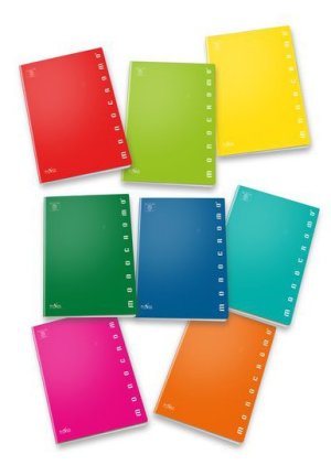 Sešit velikosti A4 v různých barvách a přebalem z tvrdého papíru. Štítek s informacemi jako je předmět, jméno a příjmení, škola, adresa a další se nachází na prvním vnitřním listu.