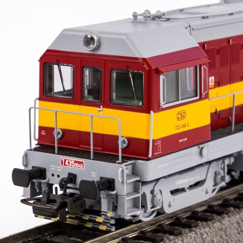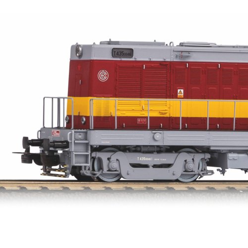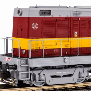 Model čtyřnápravové diesel‑elektrické lokomotivy T 435 „Hektor“ Československých státních drah, nejčastěji sloužící k posunování a pohonu lehkých nákladních souprav. Pro vysokou spolehlivost a jednoduchou obsluhu jsou tyto stroje dodnes provozovány soukromými společnostmi na vlečkách průmyslových podniků a při údržbě tratí.Díky pozornosti věnované detailům můžete obdivovat rozdílné podvozky odlišující starší a novější série lokomotivy, a to samozřejmě včetně uspořádání soustavy brzd. Precizně zpracovaná karoserie neopomíná ani nejjemnější prolisy ve dvířcích údržby, které oživují její spartánský charakter. Dojem autenticity umocňuje prvotřídní lakování pečlivě vybranými odstíny a potisk nejvyšší kvality. Dokonale čirými okénky je možno nahlížet do náležitě upraveného interiéru kabiny. Stroj zdobí řada dodatečně připojených prvků, mezi nimiž se vyjímá zejména zábradlí, ale patří k nim také podrobně zhotovený systém chlazení a elektrické vedení na střeše. Pro účely vystavení ve vitríně lze model navíc doplnit detaily táhlového ústrojí, které jsou součástí balení.Výkonný motor je vybaven rozměrnými setrvačníky a moment je přenášen prostřednictvím dvojice úhlopříčně uspořádaných bandážovaných kol na vnitřních nápravách, poháněná jsou však všechna dvojkolí. V součinnosti s těžkým, precizně navrženým a sestaveným zinkovým podvozkem je tak výsledkem vysoká tažná síla a bezvadně plynulý chod. Trojice světel na čelech se rozsvěcí a mění barvu v závislosti na směru jízdy. Osvětlením je vybavena jak kabina strojvedoucího, pak také poutavý detail v podobě provozního čísla stroje. Nejen pokročilého řízení světel lze dosáhnout vestavbou digitálního ovládání. Model je možno rozšířit zvlášť určeným digitálním dekodérem se zvukovým modulem a reproduktorem. Hlavní vlastnosti: analogové ovládánínapájení DCčtveřice nápravmotor s dvojicí setrvačníkůdvojice bandážovaných hnacích kolsvětla s přepínáním barvy dle směru jízdyosvětlení kabiny strojvedoucího a provozního číslarozhraní PluX22 dle NEM 658šachta dle NEM 362 s kinematikou krátkého spřáhla Dokumentace: brožura k BR 107/T 435 (DE)obecné informace k BR 107/T 435 (DE, EN, FR, NL)návod k obsluze a seznam náhradních dílů modelu č. 52431 (DE, EN, CZ)