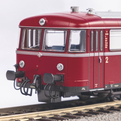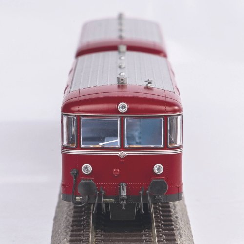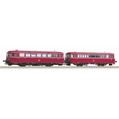 Souprava legendárního kolejového autobusu „Uerdinger“ zahrnuje motorový vůz VT 98 a řídící vůz VS 98. Předloha modelu proslula svými elegantními oblými tvary a hospodárností, kterou významným dílem přispěla k zachování lokálních tratí německých železnic. Model věrně reprodukuje původní stroje do nejmenších podrobností, je tak možno obdivovat pečlivě zpracované dveře, detaily členitého podvozku, táhlového ústrojí i náležitě ztvárněného nýtování na výlisku karoserie. Mimořádná pozornost byla věnována i provedení interiérů, do kterých lze nahlížet prostornými okny.Pohon zajišťuje výkonný mikromotor opatřený setrvačníkem, který spolu s vyrovnávacím kondenzátorem zajišťuje dokonale plynulý provoz. Vozy jsou těsně spojeny vodivým spřáhlem pro vždy hladký průjezd i bezproudými úseky trati. Samozřejmostí jsou plně funkční směrová světla, která mění barvu v závislosti na směru jízdy. Zvláštní péče byla věnována osvětlení interiéru, prostřednictvím digitálního ovládání je tak možno zvlášť ovládat světla v prostorech řidiče a cestujících. Atraktivně nasvíceny jsou rovněž cedule s vyobrazením názvu cílové stanice, umístěné na bocích pod střechou motorového vozu.Souprava je vybavena digitálním dekodérem se zvukovým modulem a reproduktorem, který obsahuje knihovnu zvuků věrných předloze a umožňuje individuálně ovládat světla v obou vozech. Je kompatibilní s protokoly DCC, Rail-Com® a Motorola®, a umožňuje i provoz v analogovém režimu. Příslušný provozní režim umí sám chytře rozeznat. S ovládacími jednotkami PIKO SmartControl, nebo i jednotkami kompatibilními s formátem mfx®, nabízí široké možnosti individuálního mapování. Hlavní vlastnosti: digitální ovládánínapájení DCvestavěn digitální dekodér se zvukovým modulem a reproduktoremdvojice nápravmotor se setrvačníkemdvojice bandážovaných hnacích kolsvětla s přepínáním barvy dle směru jízdypřepínatelné osvětlení interiérurozhraní PluX22 dle NEM 658šachta dle NEM 362 s kinematikou krátkého spřáhla Tato sada obsahuje: motorový vůz VT 98 „Uerdinger“ DB III (1 ks)řídící vůz VS 98 „Uerdinger“ DB III (1 ks) Dokumentace: obecné informace k soupravám VT 98/VS 98 „Uerdinger“ (DE, EN, FR, NL)návod k obsluze a seznam náhradních dílů modelu č. 52735 (DE, EN, FR, NL)