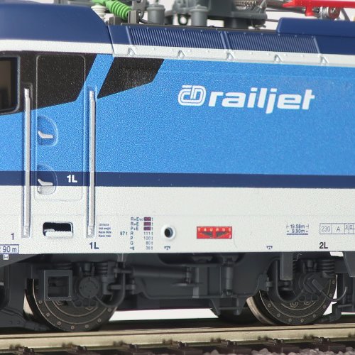 Model nejmodernější čtyřnápravové elektrické lokomotivy Rh 1216 Taurus III v provedení Railjet Českých drah, využívané především k tažení mezinárodních osobních vlaků. Elegantní a úspěšný stroj vyráběný firmou Siemens je držitelem rychlostního rekordu z roku 2006 a lze jej vídat na tratích napříč celou Evropou.Prvotřídní zpracování dává vyniknout mimořádné bohatosti detailů podvozku věrně zachycujících i nejmenší podrobnosti brzdového ústrojí. Vyniká zde také vysoce kvalitní potisk s množstvím kontrastních piktogramů. Přísně aerodynamická karoserie je doplněna citlivě zakomponovanými a důkladně zpracovanými stupínky a madly. Energický charakter stroje dokonale dotváří precizní lakování zdůrazňující jak hlavní linie, tak i drobné detaily výlisku. Střechu pak zdobí ohromující řada dodatečně připojených součástí, jimž vévodí čtveřice pantografů autenticky odrážejících provedení lokomotivy pro České dráhy.Pohon modelu zajišťuje výkonný motor s rozměrnými setrvačníky, který je spolu s těžkým, precizně navrženým a sestaveným zinkovým podvozkem zárukou skvělých jízdních vlastností. Moment je přenášen prostřednictvím dvojice úhlopříčně uspořádaných bandážovaných kol na vnitřních nápravách, poháněná jsou však všechna dvojkolí. Trojice světel na čelech se rozsvěcí a mění barvu v závislosti na směru jízdy. Lokomotiva je vybavena digitálním dekodérem se zvukovým modulem a reproduktorem, který obsahuje knihovnu zvuků věrných předloze a umožňuje pokročilé ovládání světel. Je kompatibilní s protokoly DCC, Rail‑Com® a Motorola®, a umožňuje i provoz v analogovém režimu. Příslušný provozní režim umí sám chytře rozeznat. S ovládacími jednotkami PIKO SmartControl, nebo i jednotkami kompatibilními s formátem mfx®, nabízí široké možnosti individuálního mapování. Hlavní vlastnosti: napájení DCdigitální ovládánívestavěn digitální dekodér se zvukovým modulem a reproduktoremčtveřice nápravmotor s dvojicí setrvačníkůdvojice bandážovaných hnacích kolsvětla s přepínáním barvy dle směru jízdyčtveřice pantografůrozhraní NEM 652šachta dle NEM 362 s kinematikou krátkého spřáhla Dokumentace: obecné informace k Rh 1216 Taurus (DE, EN, FR, NL)návod k obsluze a seznam náhradních dílů modelu č. 59845 (DE, EN, FR, CZ)návod k obsluze digitálního dekodéru č. 56615 (DE)návod k obsluze digitálního dekodéru č. 56615 (EN)