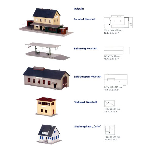 Video je pouze ilustrační, zobrazuje příbuzný produkt. Výhodná souprava pěti staveb nádraží Neustadt ze série modelů PIKO HOBBY, s jejíž pomocí hravě vytvoříte scénu stanice a jejího nejbližšího okolí. Ostatní předměty zachycené na obrázku (auta, figurky atd.) nejsou součástí dodávky. Plastikové miniatury PIKO naleznou uplatnění při návrzích realistických kolejišť a dioramat. Propracovanou barevností napodobují své předlohy s maximální věrností. Detailní a přesné plastové výlisky jednotlivých dílů do sebe hladce zapadají a díky detailnímu návodu přiloženému ke každé stavebnici je sestavení snadné, můžete tak svůj cenný čas věnovat jedinečnému návrhu krajiny a rozložení jednotlivých prvků na scéně. Mezi příslušenstvím nabízeným k těmto modelům naleznete rozmanité doplňky, spotřební materiál i průvodce s návody a cennými radami pro návrhy kolejišť. Hlavní vlastnosti:5 staveb (nádraží, nástupiště, výtopna (depo), stavěcí věž a rodinný dům)měřítko H0 (1:87)realistické barvysnadné sestavení Dokumentace:návod k sestavení modelu č. 61923
