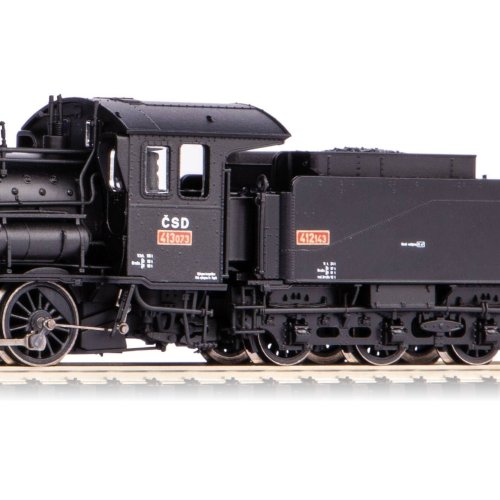 Model lokomotivy řady 415 (G 7.1) ČSD plní četná přání fanoušků. Lokomotiva disponuje těžkým zinkovým odlitkem rámu, výkonným motorem a pečlivým provedením pohonného strojku, které jí propůjčují vynikající jízdní vlastnosti. Zaujme mnoha samostatně aplikovanými detaily, jako je píšťala, ovládací rozvody, či ochranné trubky pístu. Mezi dalšími detaily vyniknou čerpadla, brzdový válec, řízení a paprsková kola. Dopodrobna je zpracovaný rovněž tendr. Lak i tisk nejvyšší kvality jsou věrné předloze. Bílé LED osvětlení se mění v závislosti na směru jízdy a osvětlena je rovněž kabina strojvedoucího, připravená k vestavbě digitálního ovládání. Pro PIKO modely je závazné dodržení úzkého prostoru mezi lokomotivou a tendrem. Model je možno rozšířit zvlášť určeným digitálním dekodérem se zvukovým modulem a reproduktorem. Hlavní vlastnosti: čtveřice nápravmotor se setrvačníkemdvojice bandážovaných hnacích kolsvětla bílé barvy s přepínáním dle směru jízdyosvětlení interiérutřínápravový tendrrozhraní Next18 dle NEM 662šachta dle NEM 358 s kinematikou krátkého spřáhla Dokumentace: Obecné informace k BR 55 (DE)Obecné informace k BR 55 (EN)Návod k obsluze a seznam náhradních dílů modelu č. 47103 (DE, EN, FR, CZ)