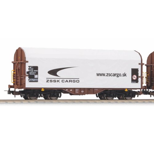Dvojice čtyřnápravových vozů s plachtovým krytem Shimmns Železniční společnosti Slovensko, určených k přepravě svitků plechu. Nabízí propracované výlisky podvozku i čelních stěn s detaily mechanismu jištění plachty. Krytí lze sejmout, a odhalit tak členitý vnitřní prostor s lůžky pro náklad (součástí balení je jeden svitek). Vůz zdobí atraktivní, barevně kontrastní detaily v podobě madel a kotviček. Vysoce kvalitní lakování a ostrý potisk zachycují i nejmenší podrobnosti předlohy. Samozřejmostí jsou precizně uložená dvojkolí zajišťující prvotřídní jízdní vlastnosti. Hlavní vlastnosti:čtveřice nápravsnímatelné krytí, součástí je vzorek nákladušachta dle NEM 362 s kinematikou krátkého spřáhla Dokumentace:návod k obsluze a seznam náhradních dílů modelu č. 58258 (DE, EN, FR, IT)