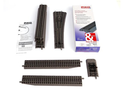 Sada kolejí s detailní reprodukcí dřevěných pražců na štěrkovém podloží, ve věrných barvách. Zahrnuje dvojici rovných úseků s jednoduchou výhybkou na kusou kolej. Ke kompletaci samostatně napájeného oválu (viz ilustrační obrázek) nutno doplnit o obloukové koleje v příslušném množství a dvojici rovných kolejí, jedné s přípojem pro napájecí svorku. Výhybku lze ručně ovládat. Nabízí se také dálkově ovládaný přestavník, pro který je zde uchystané připojení a je vhodné jej doplnit příslušným podložím. Plocha základny: 158x88 cmMinimální konstrukční plocha: 168x98 cm Hlavní vlastnosti: dva rovné úseky s výhybkou na kusou kolejvčetně podloží Tato sada obsahuje: kolej rovná G239 s podložím - 55400 (1 ks)kolej rovná G231 s podložím - 55401 (3 ks)kolej rovná G231 (s vybráním vlevo) s podložím - 55401 (1 ks)kolej rovná G231 (s vybráním vpravo) s podložím - 55401 (1 ks)výhybka WR jednoduchá (G239/R9) pravá s podložím - 55421 (1 ks)kusá kolej se zarážedlem s podložím - 55446 (1 ks) Dokumentace: Návod k obsluze (DE, EN)Brožura ke kolejivu PIKO H0 A-Gleis (DE, EN)