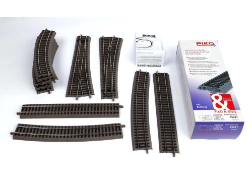 Sada kolejí s detailní reprodukcí dřevěných pražců na štěrkovém podloží, ve věrných barvách. Zahrnuje paralelní oblouk s rovným úsekem a dvěma jednoduchými výhybkami. Ke kompletaci samostatně napájeného oválu s kusou kolejí (viz ilustrační obrázek) nutno doplnit o sadu B, obloukové koleje R2 v příslušném množství a dvojici rovných kolejí, jedné s přípojem pro napájecí svorku. Výhybky lze ručně ovládat. Nabízí se také dálkově ovládané přestavníky, pro které jsou zde uchystaná připojení a je vhodné je doplnit příslušným podložím. Plocha základny: 158x88 cmMinimální konstrukční plocha: 168x98 cm Hlavní vlastnosti: paralelní oblouk s rovným úsekem a dvěma výhybkamivčetně podloží Tato sada obsahuje: kolej rovná G239 s podložím - 55400 (1 ks)kolej rovná G231 s podložím - 55401 (1 ks)kolej oblouková R1 s podložím - 55411 (6 ks)kolej oblouková R9 s podložím - 55419 (2 ks)výhybka WL jednoduchá (G239/R9) levá s podložím - 55420 (1 ks)výhybka WR jednoduchá (G239/R9) pravá s podložím - 55421 (1 ks) Dokumentace: Návod k obsluze (DE, EN)Brožura ke kolejivu PIKO H0 A-Gleis (DE, EN)