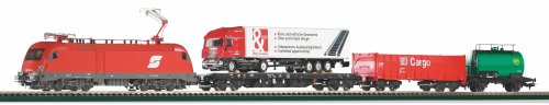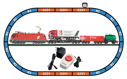 Startovací sada skládající se z elektrické lokomotivy Taurus, třech nákladních vozů, z nichž jeden je naložen volně uloženým kamionem, prodlouženého oválu a analogového ovládání s napájením. Lokomotivu lze dovybavit digitálním dekodérem. Koleje s podložím zajišťují vyšší odolnost a životnost při opakovaném rozebírání. Nákup sady je vhodné doplnit o příslušný spotřební materiál. Plocha základny: 158x88 cmMinimální konstrukční plocha: 168x98 cm Hlavní vlastnosti: analogové ovládáníčtveřice náprav (lokomotiva, dvojice nákladních vozů)dvojice náprav (cisternový vůz)volně uložený kamionfigurka strojvedoucíhosvětla bílé barvy s přepínáním dle směru jízdyrozhraní NEM 652šachta dle NEM 362koleje s podložím Tato sada obsahuje: elektrická lokomotiva Taurus ÖBB V (1 ks)různé nákladní vozy (3 ks)kolej oblouková R2 s podložím - 55412 (12 ks)kolej rovná G231 s podložím - 55401 (5 ks)kolej rovná G231 s podložím (přípoj pro napájecí svorku) - 55406 (1 ks)podloží pro napájecí svorku - 55447 (1 ks)napájecí svorka ke kolejím analogová - 55270 (1 ks)základní analogový ovladač s napájecím zdrojem - 55003 (1 ks) Dokumentace: Návod k obsluze a seznam náhradních dílů soupravy č. 57177 (DE, EN, F, NL, ITA, E, POL, RUS, CHN, CZ, HUN)