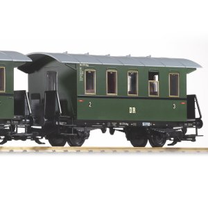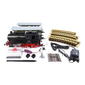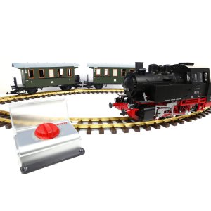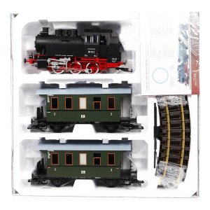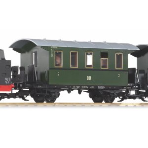 Video je pouze ilustrační, zobrazuje příbuzný produkt. Co je malé, to je hezké, ale co je větší, to je lepší. A když vlak, tak gigantický! Modely měřítka G od firmy PIKO představují mimořádně hodnotné hračky, které přivádějí v úžas fanoušky techniky napříč generacemi. Vydejte se na fantastickou jízdu těmi nejmohutnějšími stroji, omráčí Vás silou motorů a váhou poctivé porce masivního kovu. Podnikněte cestu ke kořenům modelové železnice a odhalte působivý odkaz hračkářů staré školy! Vláčky tohoto měřítka nejsou jen velké, ale také nebývale robustní. Jsou navrženy a zhotoveny tak, aby vydržely hrubší zacházení a umožňovaly provozovat trať na zahradě i za nepříznivého počasí. Otevírají se tak široké možnosti nevídaným zážitkům, vypravte vlak na cestu zasněženou krajinou! Nemusíte se přitom bát složitého sestavování a zapojování. Kolejnice a vagónky lze snadno spojit nebo uklidit. Přehledně značené ovládací i napájecí prvky jednoduše připojíte bez použití jakéhokoliv nářadí. Vysoké životnosti dopomáhají kuličková ložiska, chromované díly, vysoce kvalitní, barevně stálé plasty a spolehlivé krytí motorů i zařízení obsluhy. Modely jsou vyráběny v souladu s nejpřísnějšími evropskými standardy a předpisy, v domovské továrně firmy PIKO, v německém Sonnebergu. ∗★∗ Ukázka zvuku zabudovaného zvukového modulu. Startovací sada soupravy osobního vlaku skládající se z parní lokomotivy BR 80 a dvou osobních vozů 2. třídy v provedení DR. Lokomotiva má chromovaná dvojkolí a je vybavena kuličkovými ložisky. Disponuje osvětlením měnícím se v závislosti na směru jízdy, analogově ovládaným zvukem a spínatelným výrobníkem kouře. Zvuk je ovládán dvojicí traťových spínacích magnetů, které jsou součástí balení. Sada také zahrnuje hůlku k rozpojení spřáhel, sloužící k odpojování a připojování vozů. Nákup sady je vhodné doplnit o příslušný spotřební materiál. Plocha základny: 130x130 cmMinimální konstrukční plocha: 150x150 cm Hlavní vlastnosti: trojice náprav (lokomotiva)zvukový modulvýrobník kouřesvětla bílé barvy s přepínáním dle směru jízdydvojice náprav (vagony)vhodné i do exteriéruvyrobeno v Německu Tato sada obsahuje: parní lokomotiva BR 80 DR III se zvukovým modulem a výrobníkem dýmu (1 ks)osobní vagon 2. tř. DR III (2 ks)kolej oblouková G-R1 - 35211 (12 ks)připojovací svorka s kabelem - 35270 (1 ks)balení 14 ks kolejových spojek - 35285 (1 ks)základní analogový ovladač - 35006 (1 ks)základní napájecí zdroj - 35005 (1 ks)traťový spínací magnet - 35268 (2 ks)hůlka k rozpojení spřáhel - 36039 (1 ks)přípravek k výrobě kouře (10ml) (1 ks) Dokumentace: návod k obsluze soupravy č. 37125 (DE, EN, F, NL) obecný návod k obsluze G startovacích sad PIKO (DE, EN, F, NL)detail rozměrů lokomotivy BR 80 (DE)bezpečnostní list přípravku pro výrobník kouře (EN)specifikace napájecího zdroje (DE, EN, F, NL, E, ITA, SWE, DK)