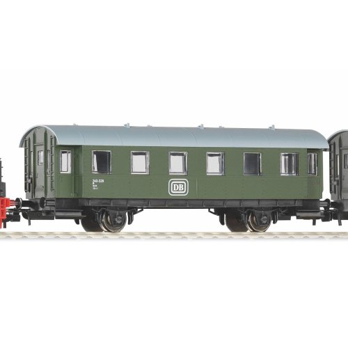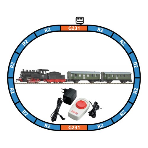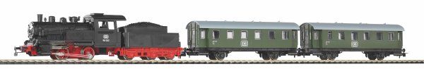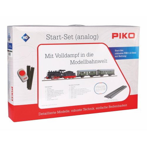 Startovací sada skládající se z parní lokomotivy 0-4-0 BR 98, dvou osobních vozů 2. třídy, základního oválu a analogového ovládání s napájením. Koleje s podložím zajišťují vyšší odolnost a životnost při opakovaném rozebírání. Nákup sady je vhodné doplnit o příslušný spotřební materiál. Plocha základny: 110x88 cmMinimální konstrukční plocha: 120x98 cm Hlavní vlastnosti: analogové ovládánídvojice nápravtřínápravový tendrspojovací hák v nestandardní šachtěkoleje s podložím Tato sada obsahuje: parní lokomotiva BR 98 s tendrem DB III - 50501 (1 ks)osobní vůz 2. třídy DB III (2 ks)kolej oblouková R2 s podložím - 55412 (12 ks)kolej rovná G231 s podložím - 55401 (1 ks)kolej rovná G231 s podložím (přípoj pro napájecí svorku) - 55406 (1 ks)podloží pro napájecí svorku - 55447 (1 ks)napájecí svorka ke kolejím analogová - 55270 (1 ks)základní analogový ovladač s napájecím zdrojem - 55003 (1 ks) Dokumentace: Návod k obsluze a seznam náhradních dílů soupravy č. 57112 (DE, EN, F, NL, ITA, E, POL, RUS, CHN, CZ)Návod k obsluze a seznam náhradních dílů modelu č. 50501 (DE, EN, F, NL, ITA, E, POL, RUS, CHN, CZ)
