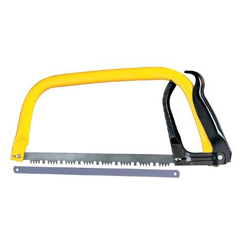 Oblouková pila STANLEY 1-20-447 má ocelový rám oválného průřezu, který je odolný vůči kroucení a ohýbání. Ochranná rukojeť chrání ruku před poraněním. Pilový list můžete snadno a rychle upevnit do rámu pomocí křídlových matic. Tvar oblouku rámu umožňuje řezání do velké hloubky (např. klád o velkém průměru). Součástí dodávky je 1 plátek na dřevo (20-437) a 1 na kov. Rozměr: 300 mm