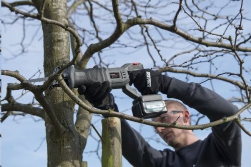 AKU ocasová pila POWEBSET24 značky Powerplus využívá pro práci sílu s otáčkami na prázdno 2600 min-1. V řezání vám bude pomáhat nastavitelná kyvná patka a ergonomicky tvarovaná rukojeť s měkčeným držadlem.