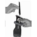 Řezný list lehce a rychle připevníte rychloupínacím sklíčidlem. Píla řeže až do hloubky 100 mm u dřeva a v případě oceli / hliníku do hloubky 6 mm.