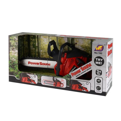 Plastová pila na baterie vydávající reálný zvuk. Má pohyblivý řetěz a její délka je cca 36 cm. Výrobek vyžaduje použití 3 ks baterií typu AA, které nejsou součástí.