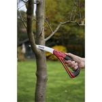 Uzavřená rukojeť zaručuje pohodlný úchop a zvyšuje bezpečnost při práci. Díky měkčené části rukojeti vydržíte řezat déle bez bolavých rukou. Po dokončené práci pilku jednoduše zavřete jako zavírací nůž. Pojistný zámek ji udrží bezpečně zavřenou. Rukojeť je také opatřena otvorem pro zavěšení pilky například na zeď.